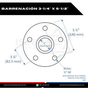 📏 Configuración: 5 birlos en 5-1/2″ x 3-1/4″ de diámetro